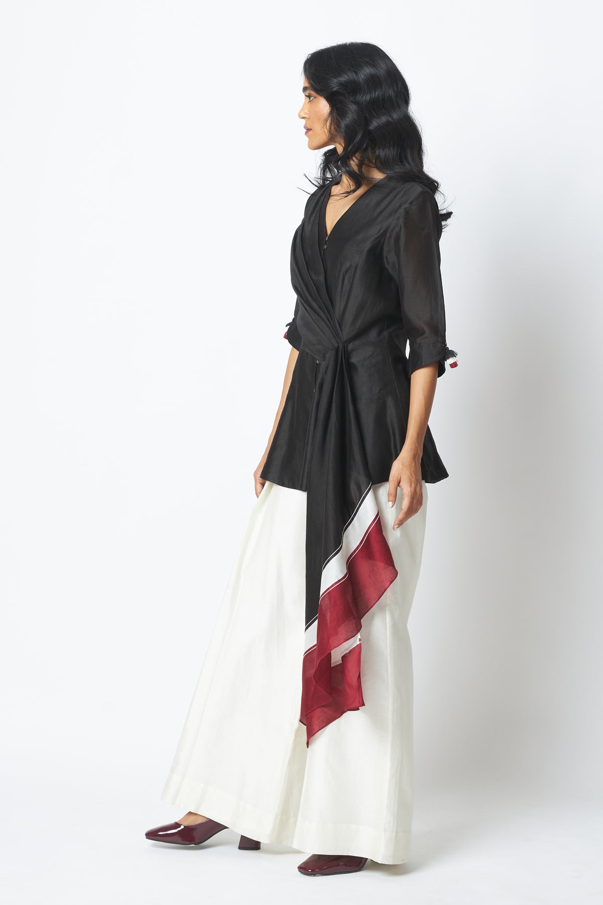 Shefali feels like a quiet horizon at twilight. A wrap silhouette that drapes with intention, its flowing layers and subtle contrast whisper of movement and grace. Softly powerful and endlessly refined, it is confidence worn with ease.